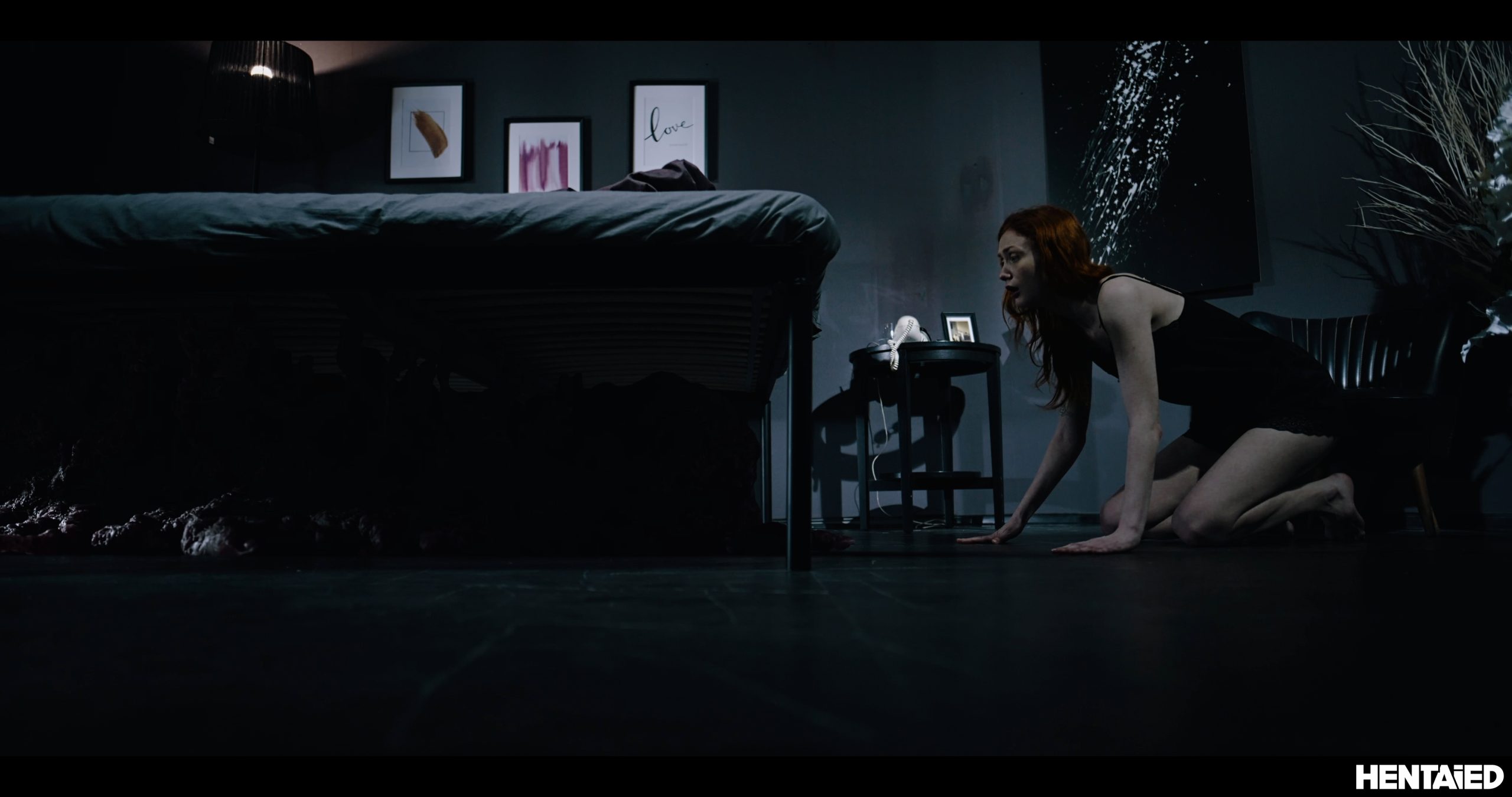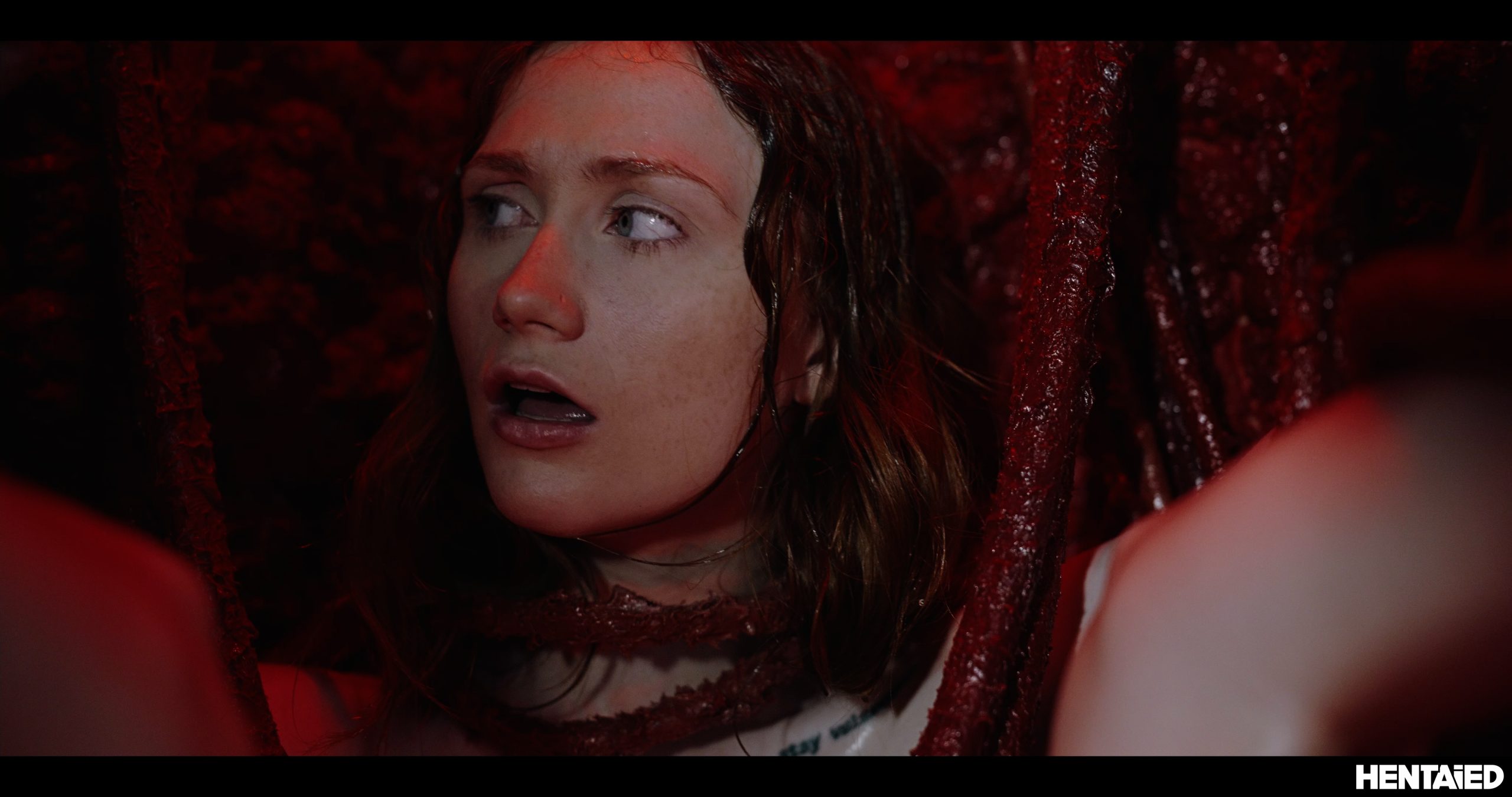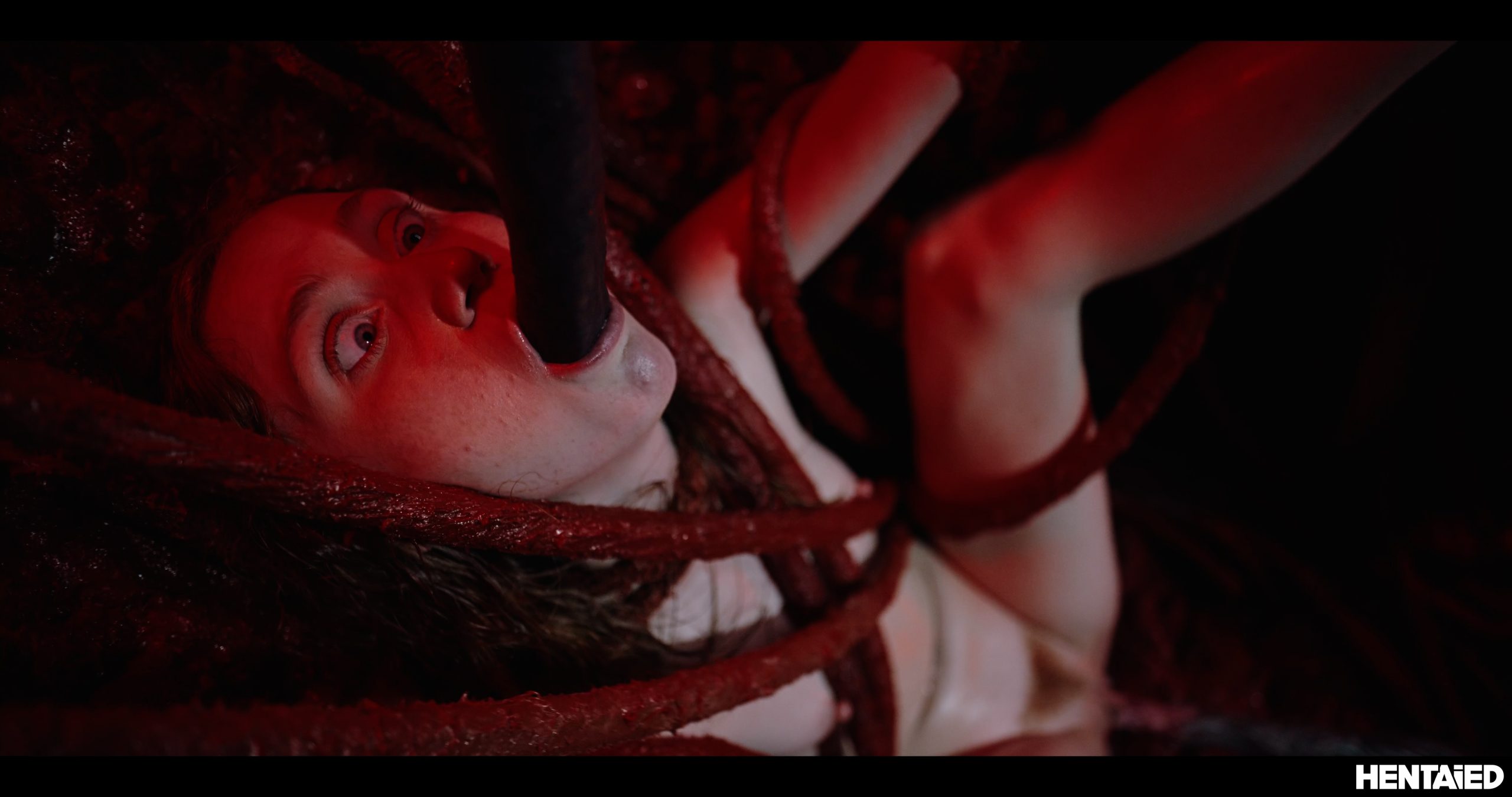 Scarlet picks up the call, and the only words she hears from that man are “Goodbye”. She hears some rumbling under the bed and bends down to check it out. Right there is some sort of a monster, it latches on the redhead beauty and sucks her inside of itself. Scarlet then wakes up, entangled in tentacles, naked, inside the monster.