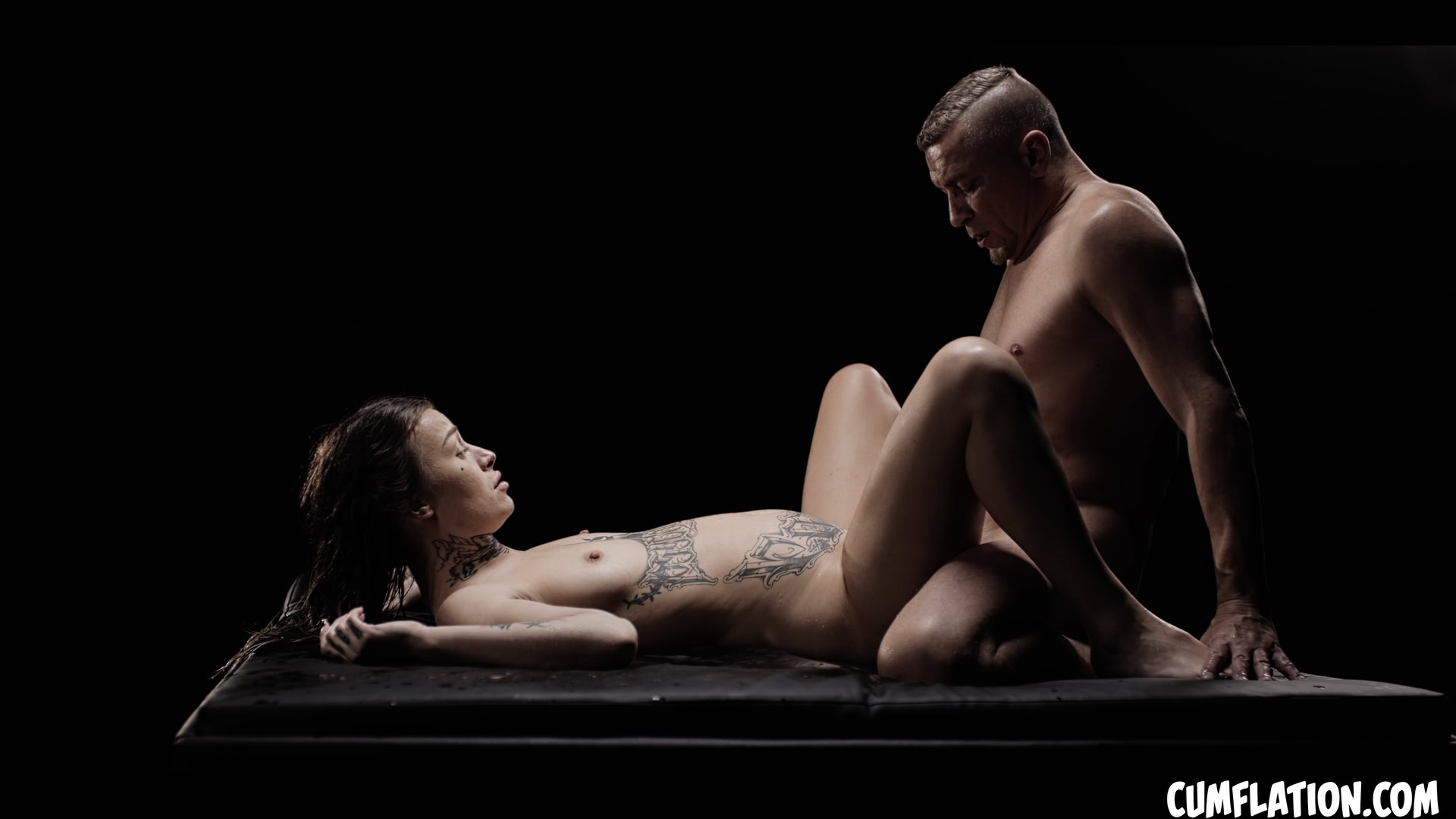 Steve doesn’t hold back. He slides his cock into her tight asshole, pounding her hard until he cums deep inside her. Reaping satisfaction from filling her guts with his thick sticky cum. Yet, his hunger for her remains insatiable. Shifting his focus to her soaked horny pussy, he thrusts even harder this time, filling her pussy with a big, thick load of fresh cum. The relentless pounding and thick loads of cum swells her belly. Making her experience an overwhelming sensation of cumflation leaving her trembling. By the time Steve is done, Tabitha lies panting, her body drenched in his cum, fully satisfied and soaked.