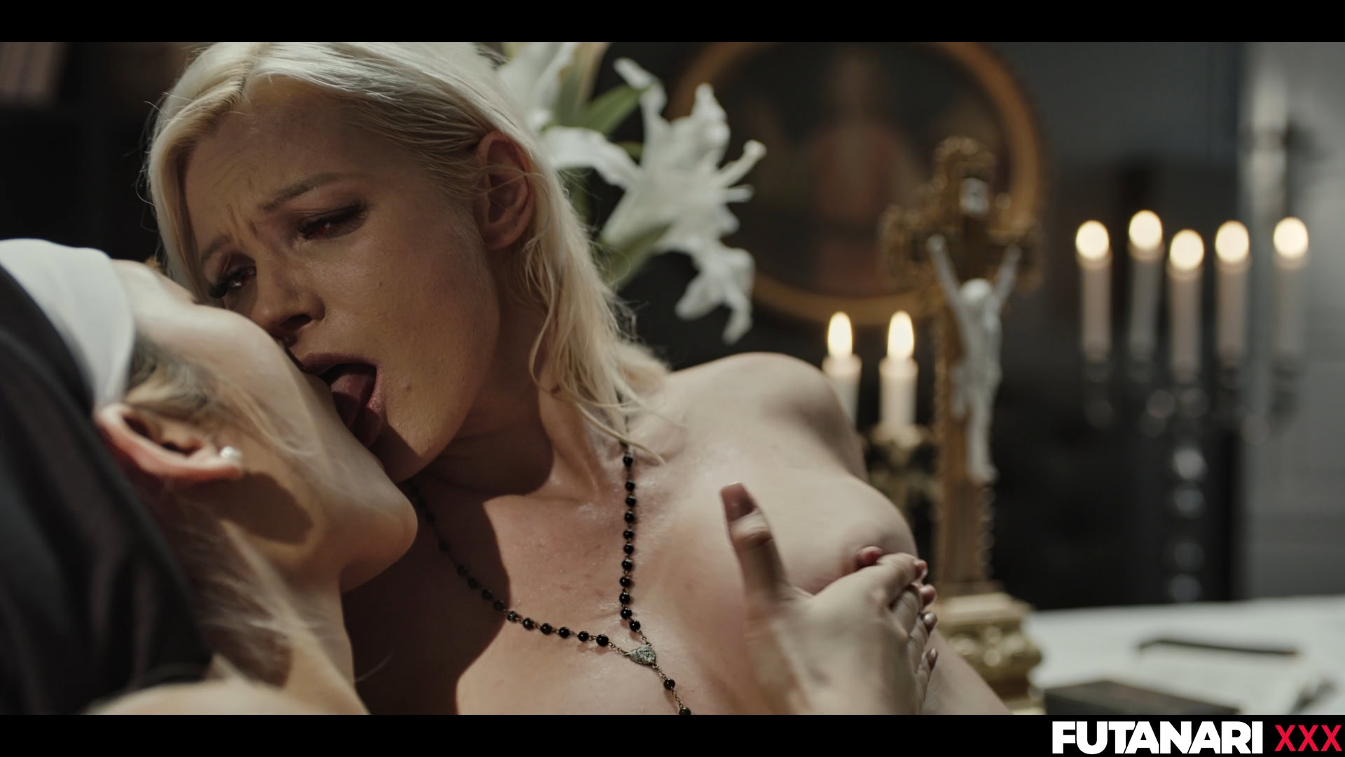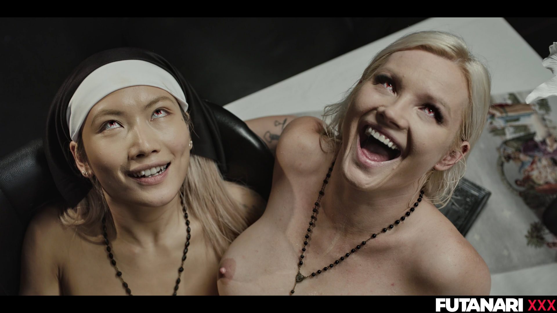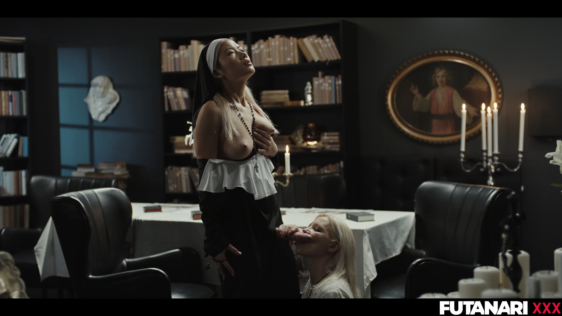 Sister Mary is awoken in the dead of night by Sister Lydia in the middle of prayer. In a sudden violent turn, Sister Lydia succumbs to a mysterious power that transforms her vagina into a throbbing cock. Believing this to be a blessing of the lord, Sister Lydia embraces her new body, seducing Sister Mary into having sex with her. The more they relish in their pleasure, the more sinful ... Read More