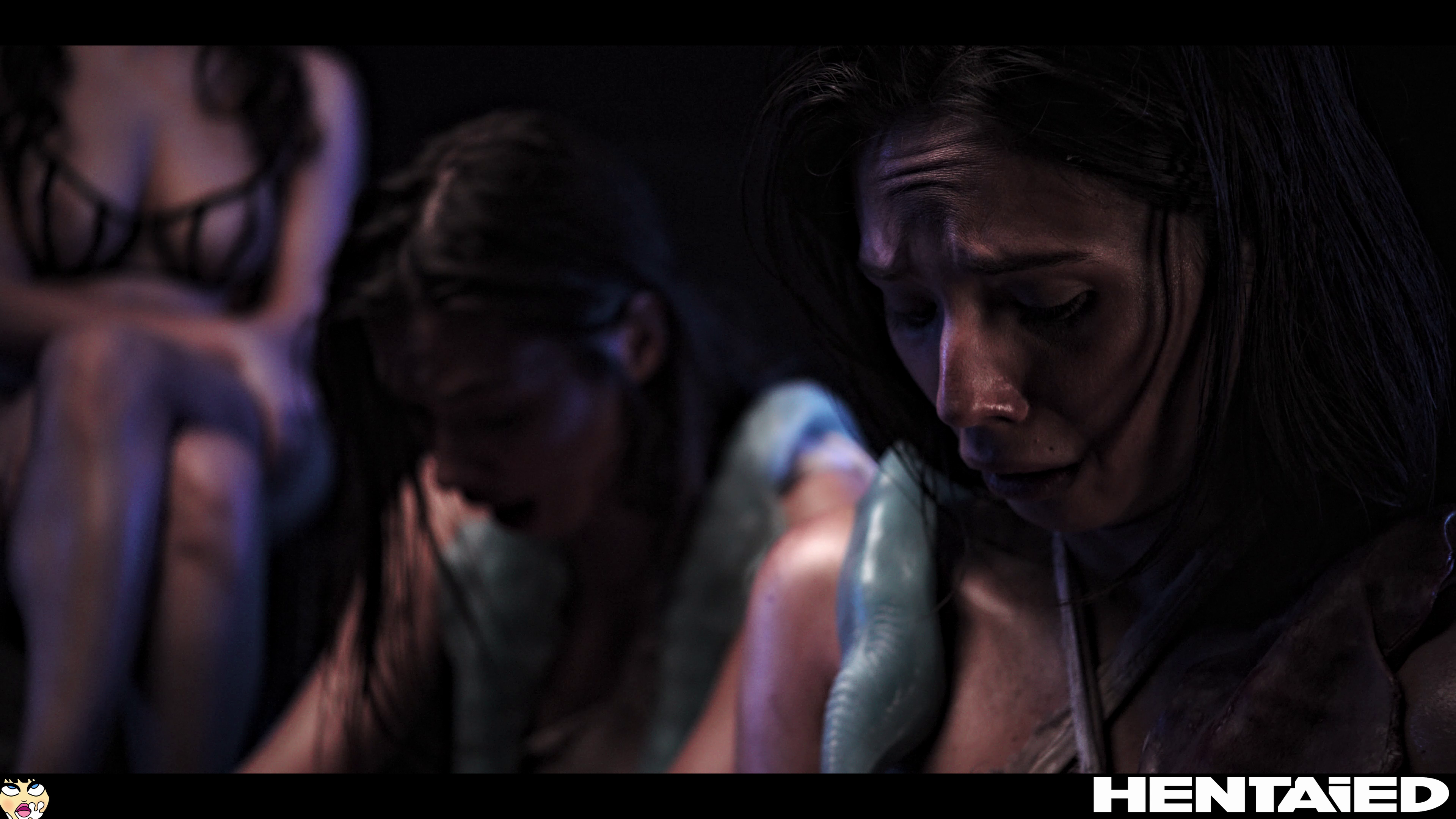 Well, by the end of the show, tentacles prepared the last big surprise: Hardcore Bukkake explosion. A dozen streams of hot alien sperm hit hardly tired fucked bodies. So, our young ladies just drowning in the sea of cum. They all fully covered in sticky creamy spooge. All we can hear is heavy exhausted breathing….and in this moment one of the most beautiful girls Sonya Blaze enters in this Hell. Totally shocked she look around and between these drained bodies she finds the love her life….