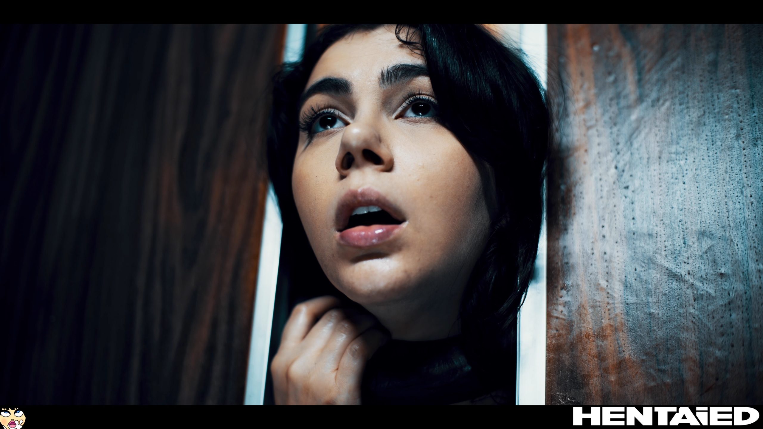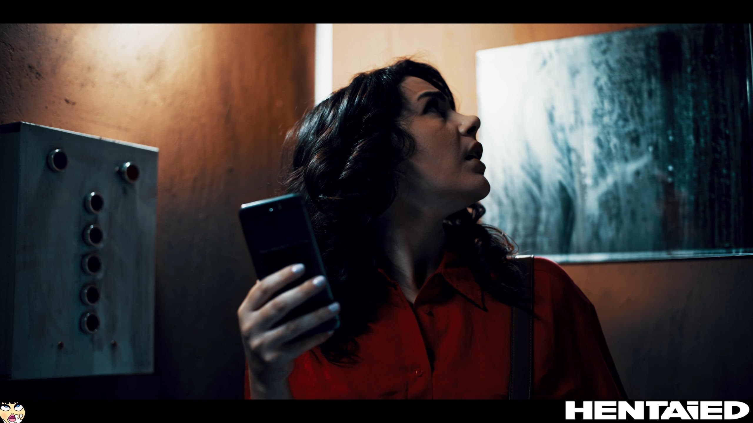 Valentins starts to be scary. She hears some noises from the elevator door and comes closer… At this moment a huge black tentacle crawls through the door. Brunette screams in fear, however nobody is going to help her.
