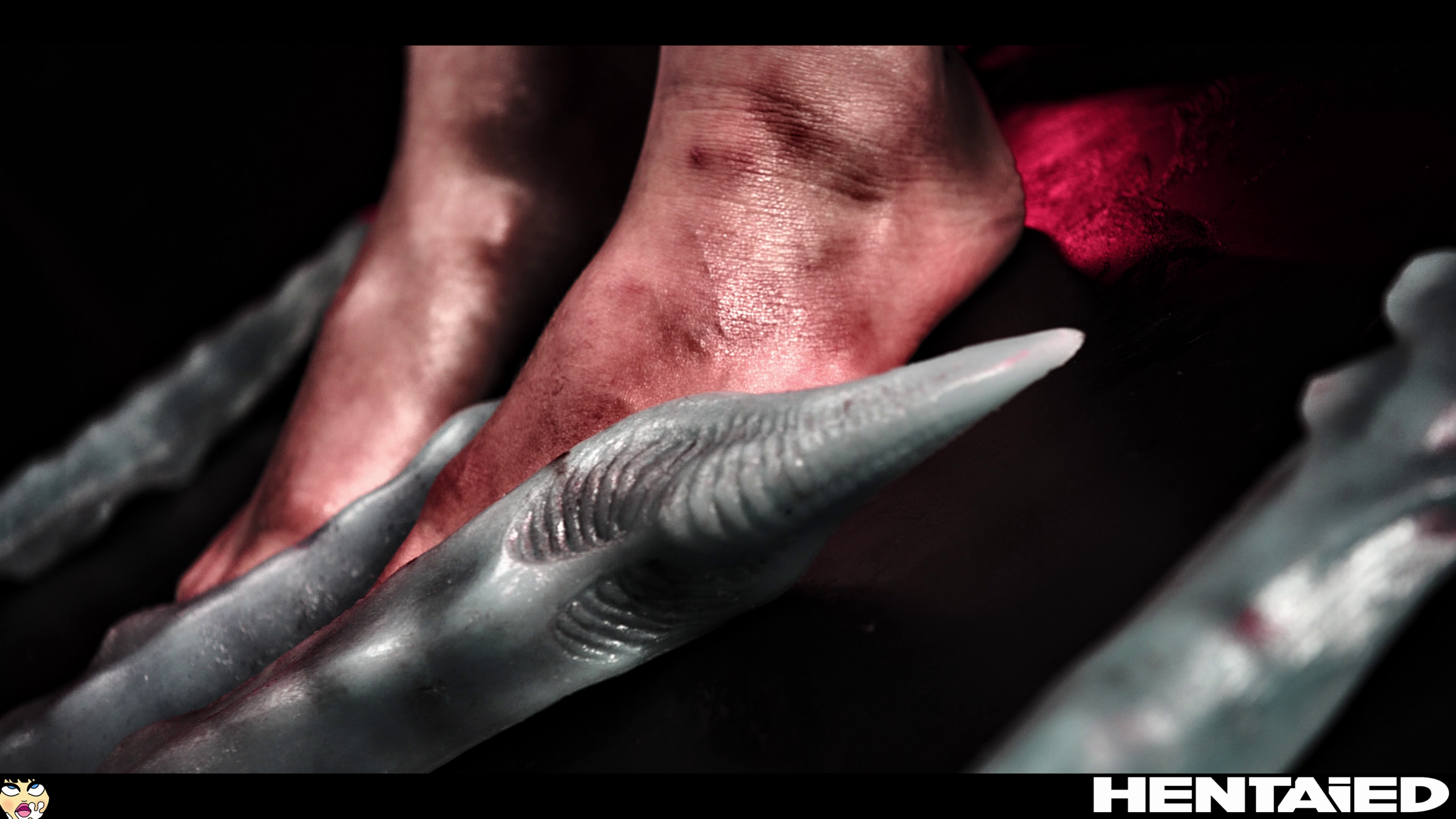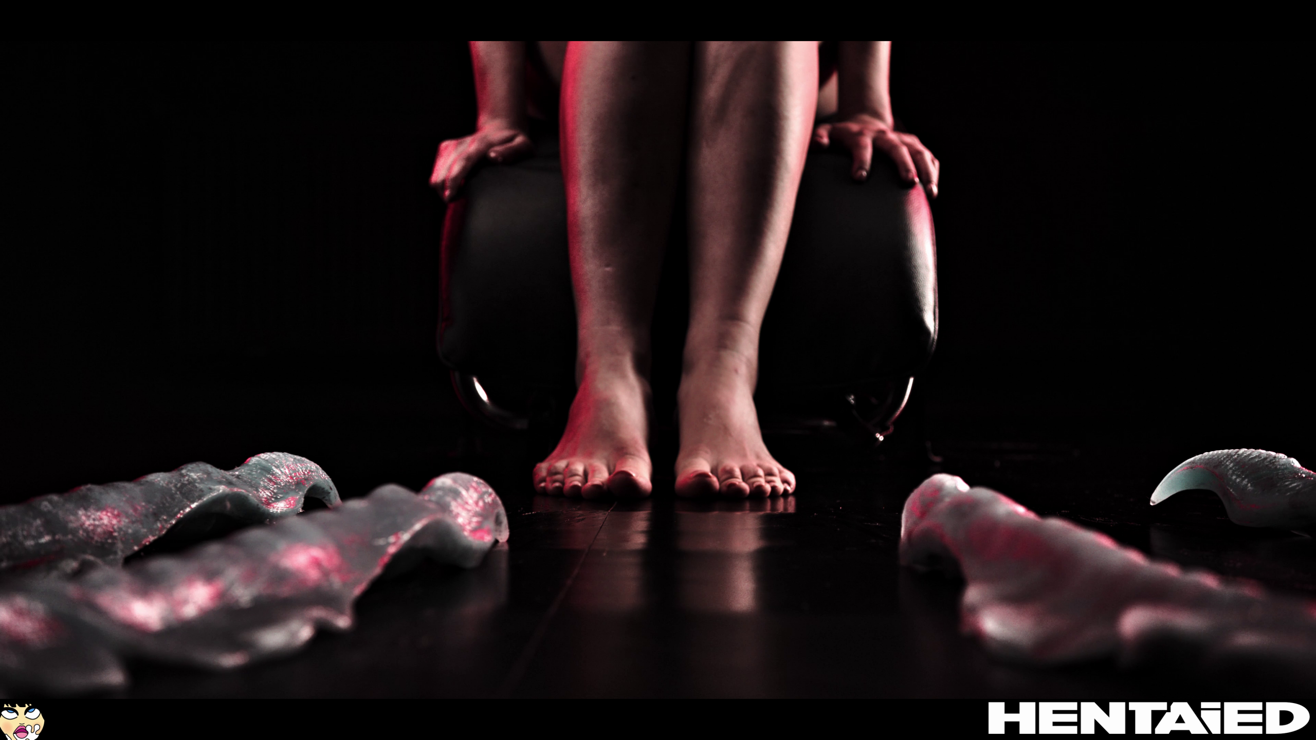 The alien tentacles begin to wrap themselves around her legs and limbs. Because of the shock, our lovely redhead is unable to move. Two tentacles were already heavily tying Jia’s wrists to the chair at this point. Another two alien beasts hooked their arms around the girl’s ankles and yanked her legs out wide, almost above her head.