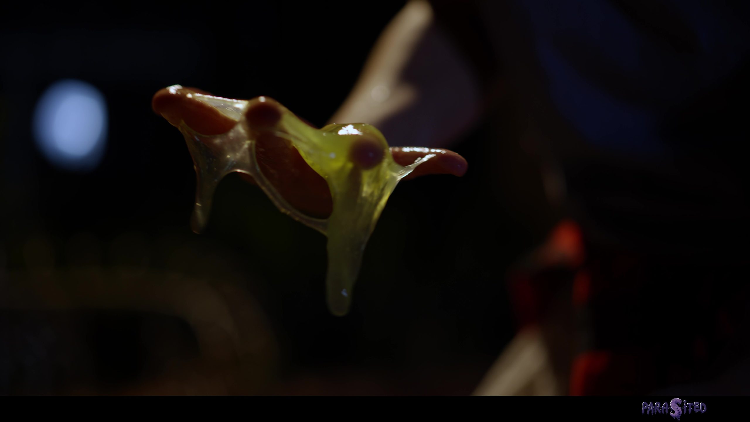 By the time they get home, she notices that something is wrong. She starts to shake and green slime comes out of her mouth. Lulu panics and she runs away – but it was too late! The alien completely took control of Kimmy and she catches up with Lulu in seconds. As she holds her down, the alien parasite slides into Lulu’s mouth taking control over her too. Now both of them are infected, they start to crave sexual pleasure more than ever! They eat each other’s pussy and fuck until both of them reach orgasm…