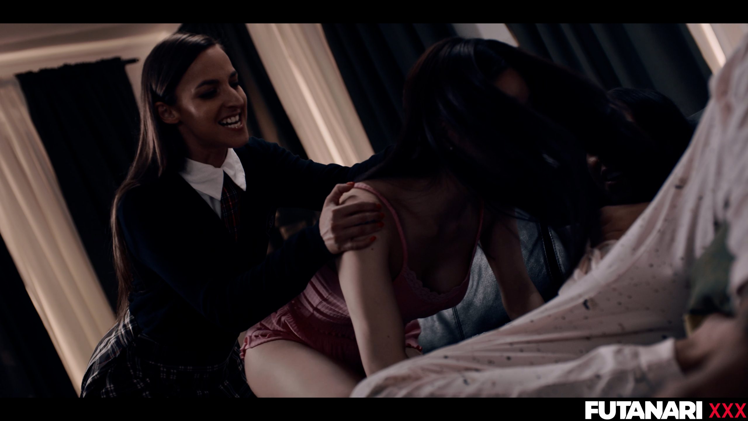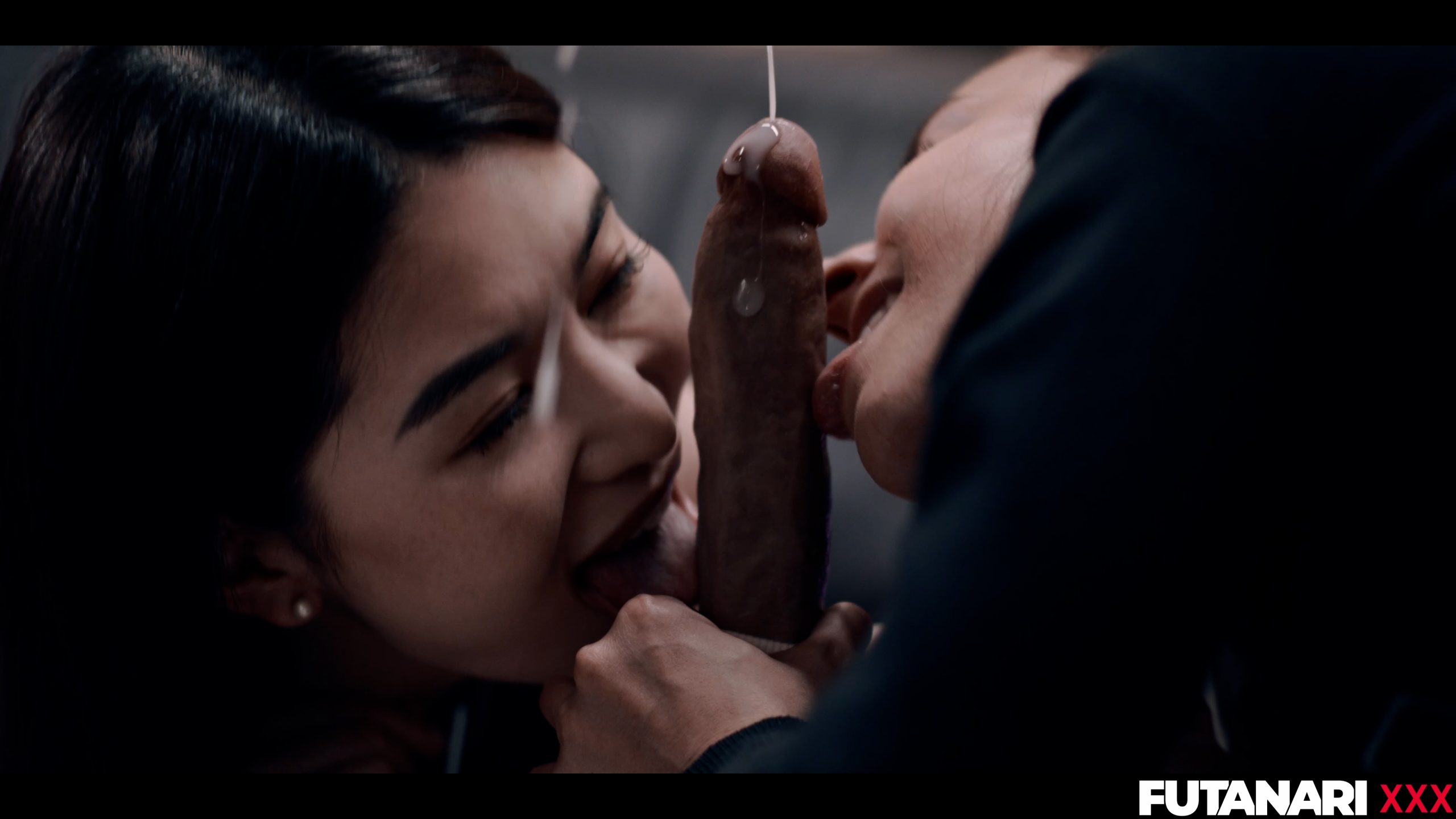 Rikako Katayama and Black Angel are watching a horror movie together. While Rikako leaves to the bathroom, Angel falls asleep. In her dream, she finds herself in an abandoned, dark room. Suddenly, a dark figure appears, which turns out to be Amirah Adara, a futanari! First, Angel is scared, but the fear evaporates quickly and changes to pleasure after Amirah's sensual touch and her huge futa cock...