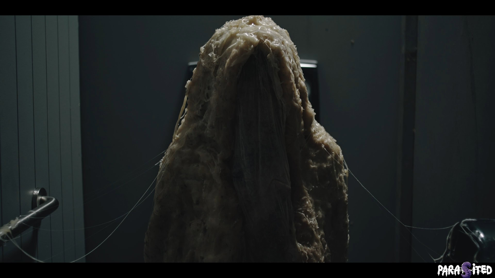 Entering the restroom to continue his cleaning duties, the school janitor makes a horrifying discovery. A human-sized cocoon. He watches in utter shock as a naked female emerges from the cocoon, covered in dark bulging veins and wet slime. Barely recognising her, it takes a moment for the janitor to realise that this infected woman is none other than Miss Vale.
