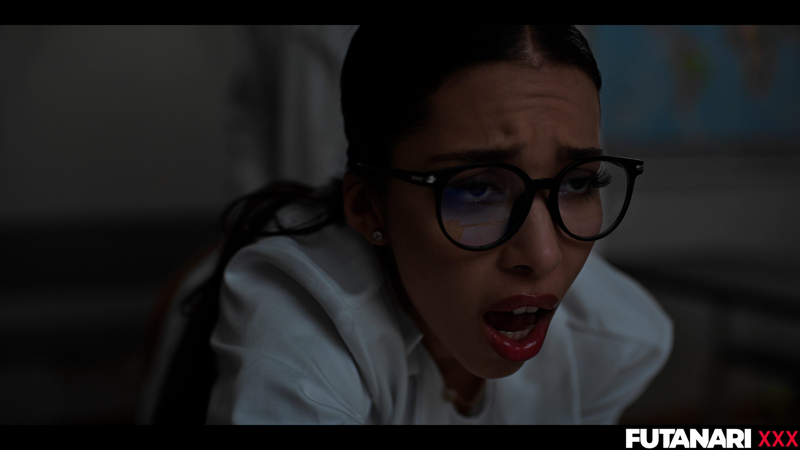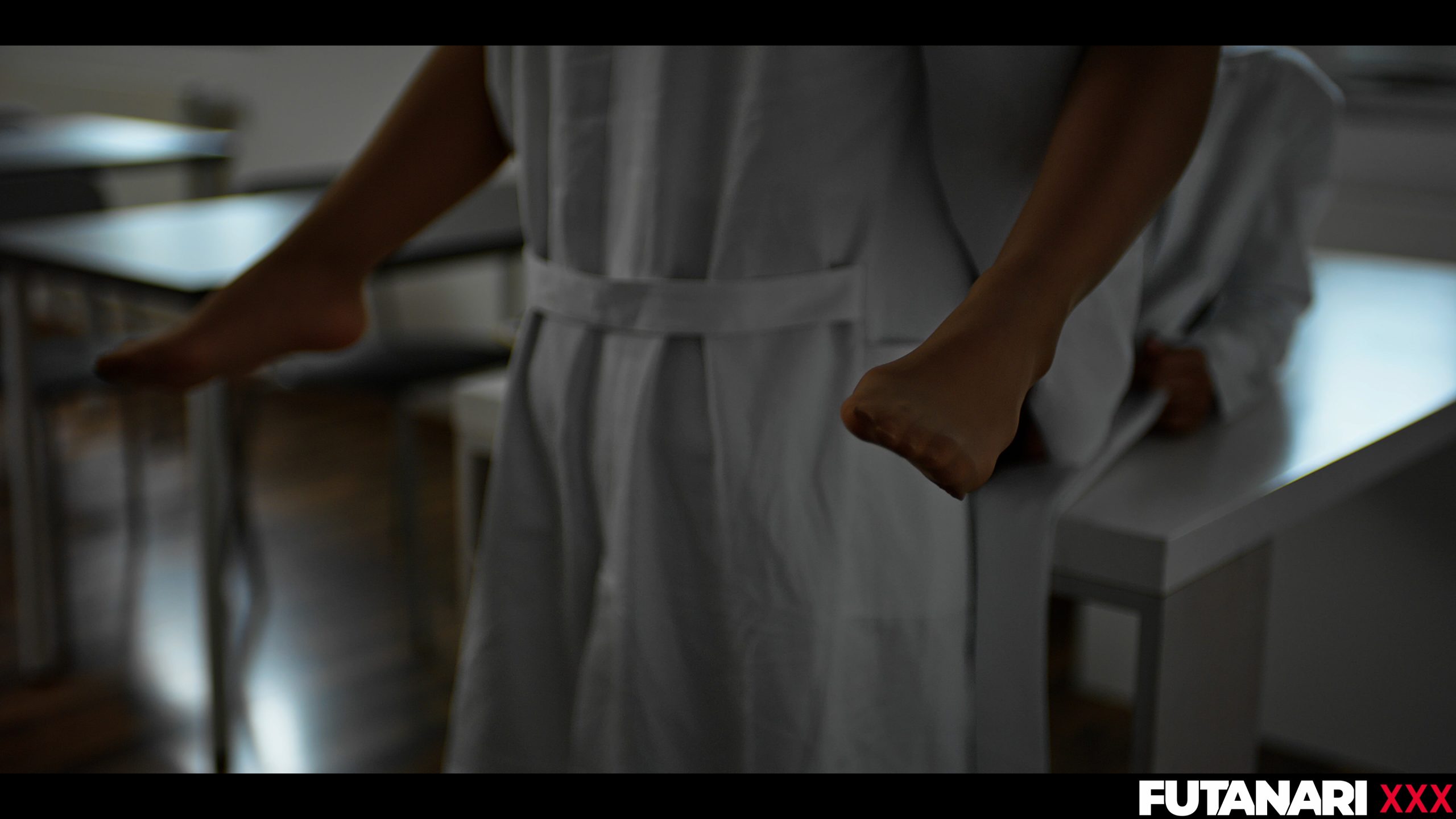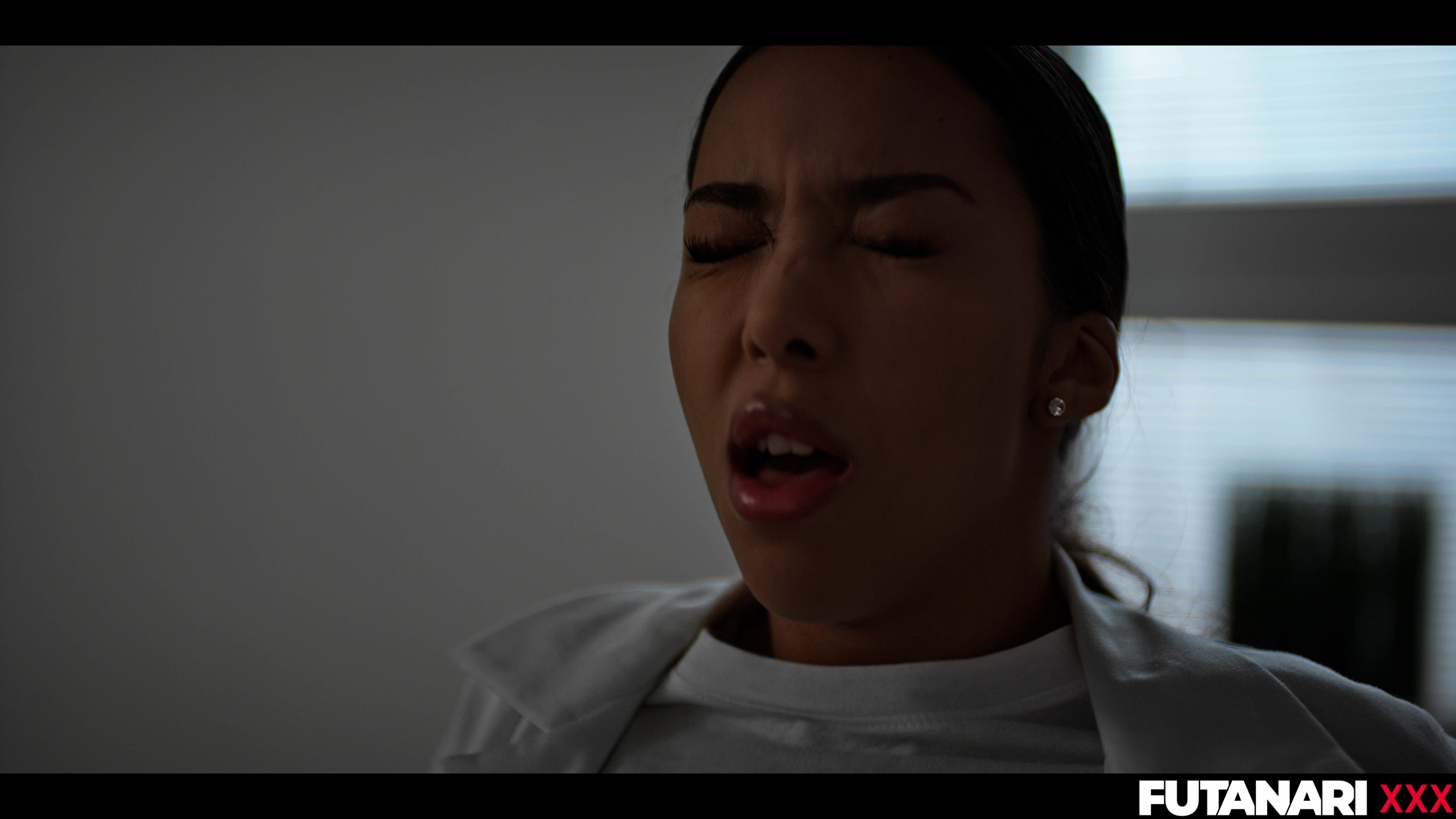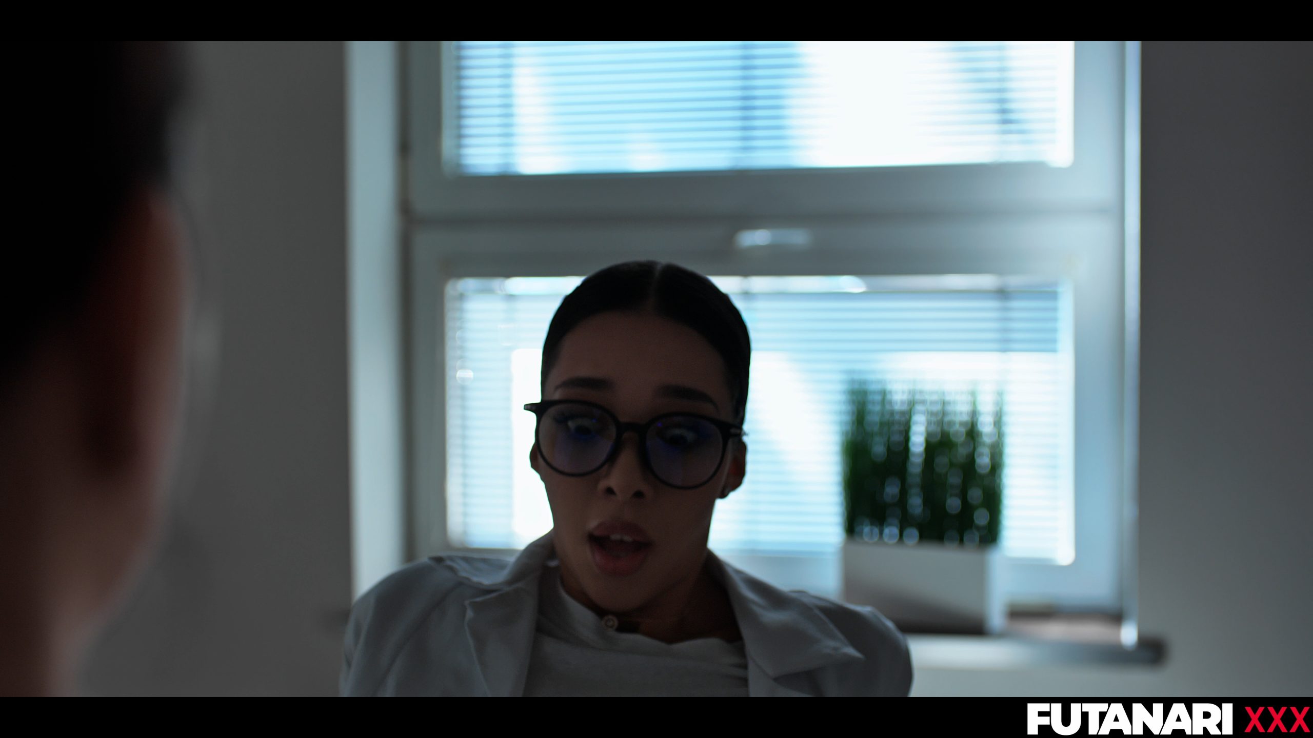 As she is talking, she slides her hand into Lia’s pants and starts exploring her. Lia is resisting, but pleasure starts taking over her body. Now, SCP-8200 begins her re-education by teaching Lia the first lesson: “Pleasure is everything.” She pushes Lia onto the desk and pulls out her huge futa cock, driving it deep inside Lia from behind. Lia is slowly letting pleasure take over her body and mind, and now it’s time for the second lesson: “Resistance is futile.”