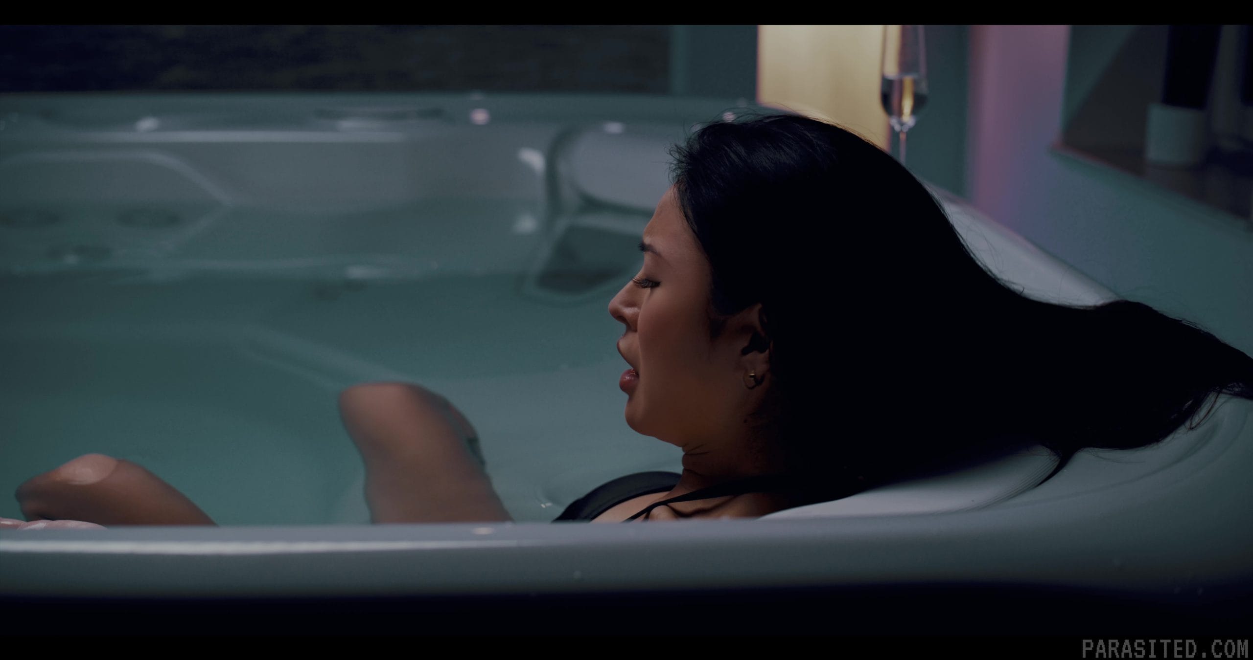 Rae is having her free time in the jacuzzi, Sonya is cooking.