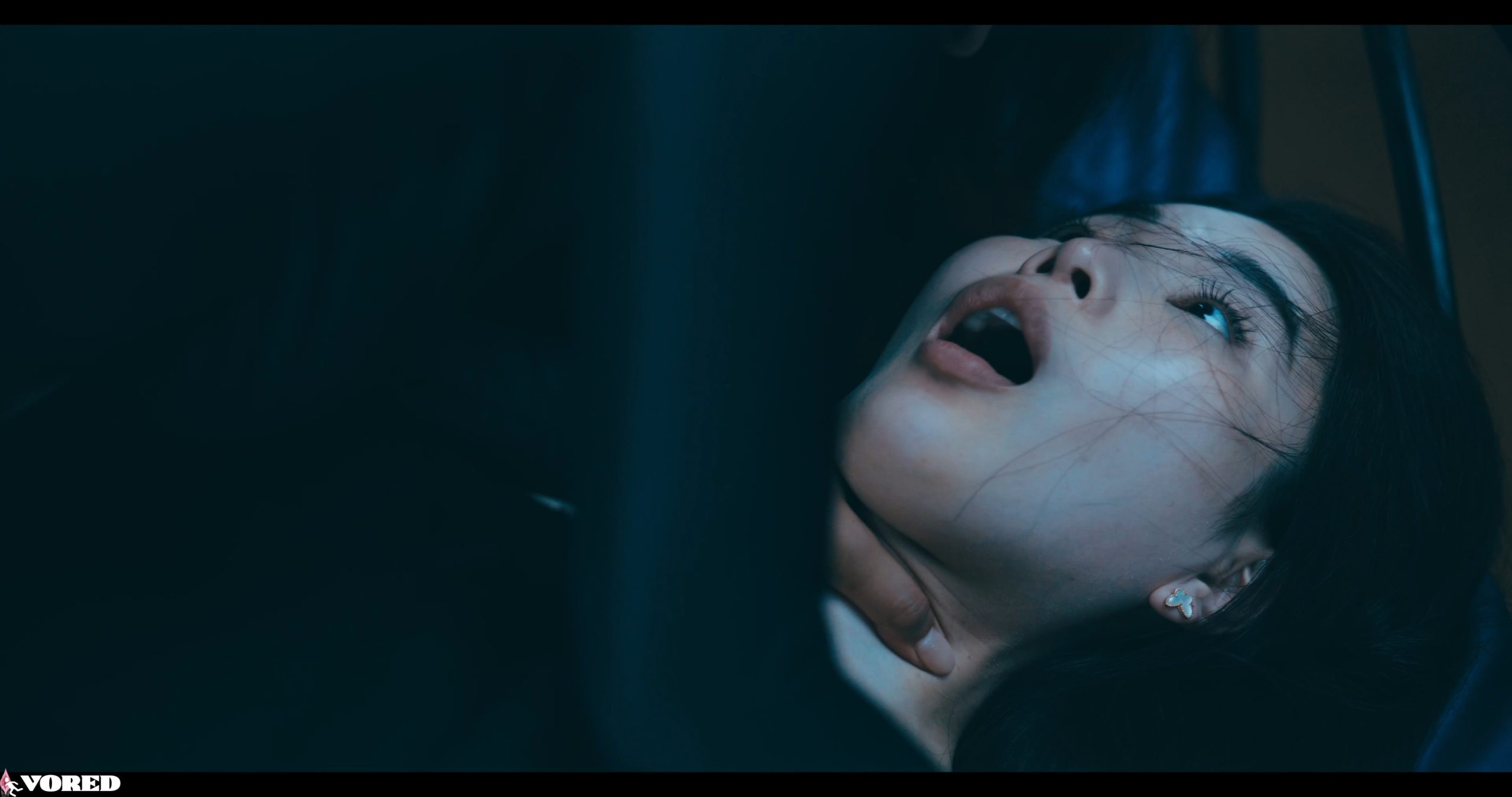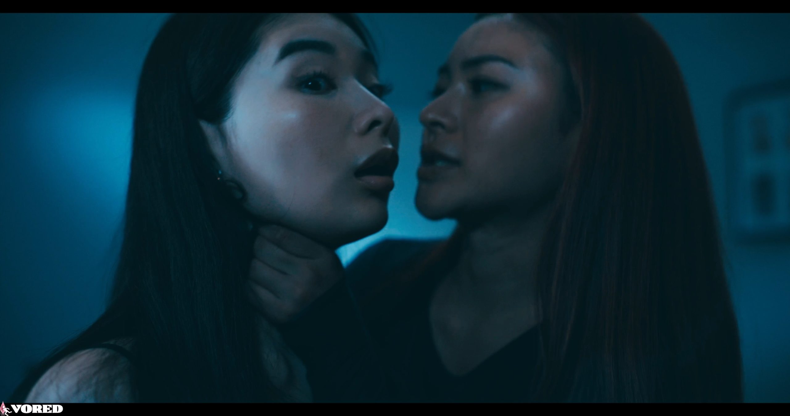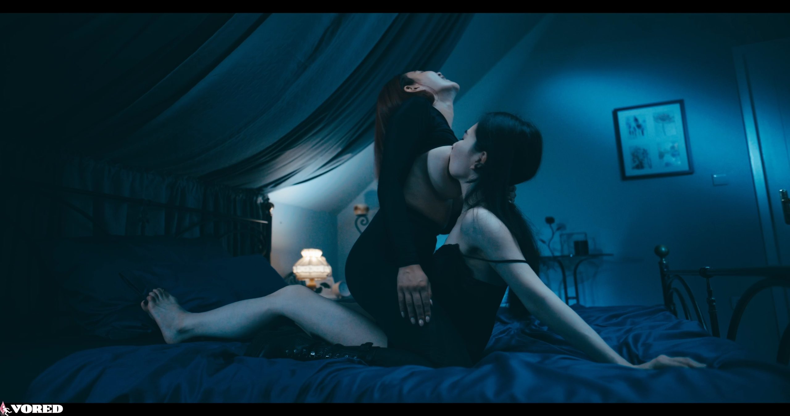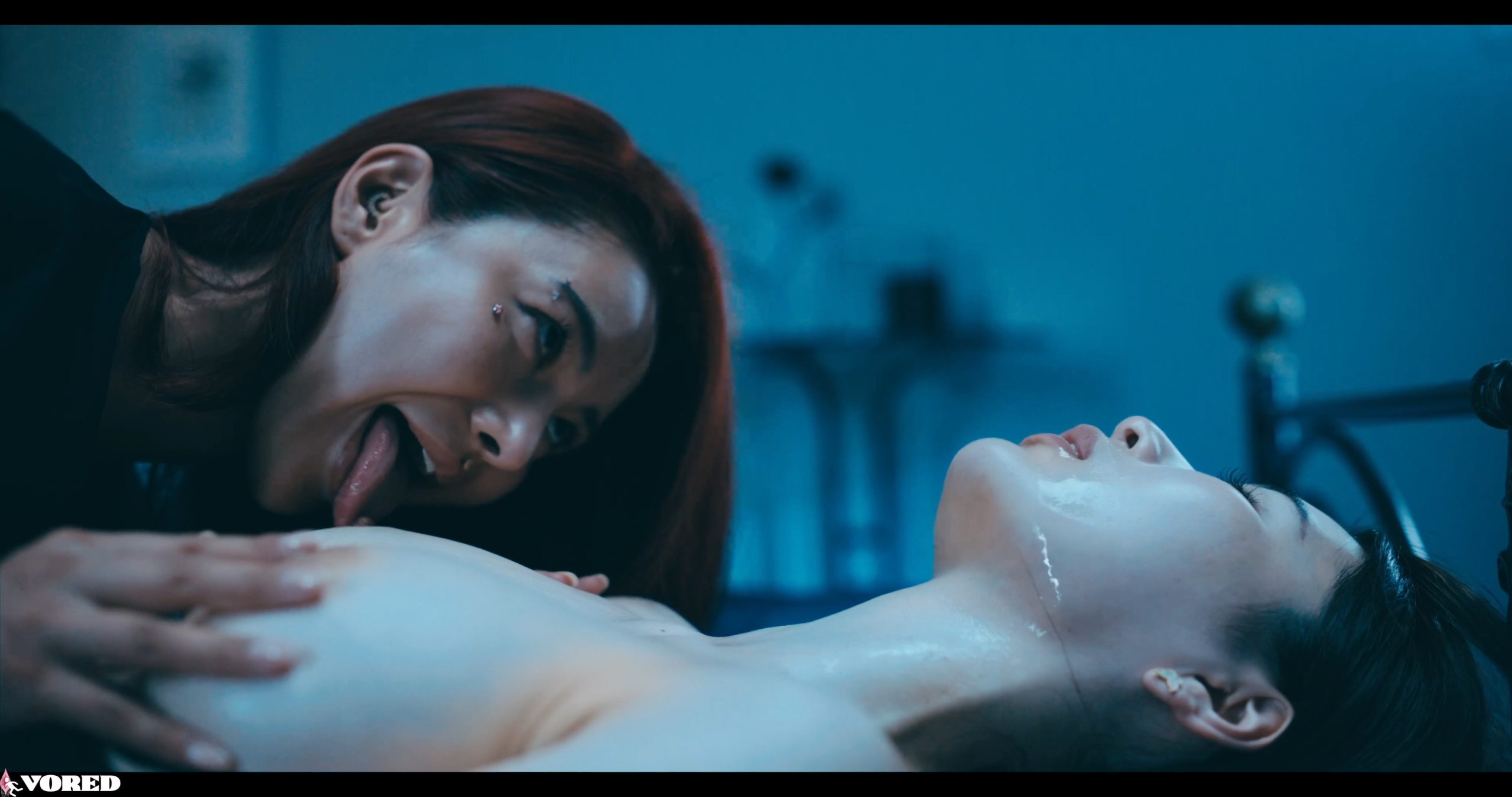 In her dimly lit bedroom, Rikako Katayama sits at her dressing table when her phone rings. As she answers, a loud bang outside catches her attention. Curious, she steps into the dark hallway and gasps upon seeing Rae Lil Black, a sinister intruder in black. Rae grabs Rikako by the throat and flings her onto the bed. Gasping for air, Rikako watches helplessly as Rae crawls toward her and exposes a lubricated breast, smothering Rikako’s face with it. Dazed, Rikako begins to suck on Rae’s nipple, milk trickling down her cheek.