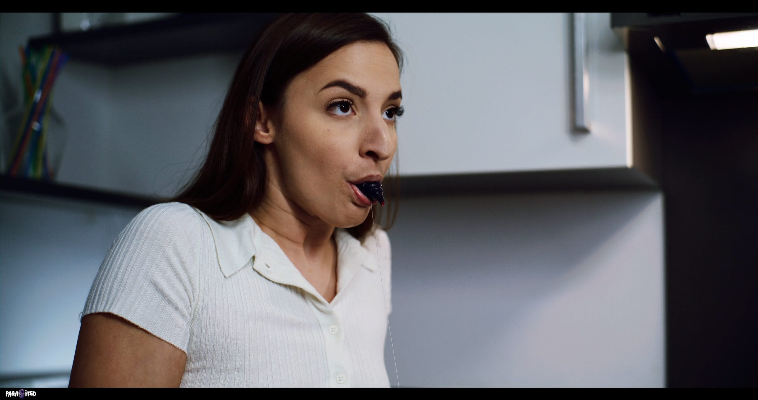 While they are having a light-hearted chat about slugs, an alien parasite slides into Amirah’s cup… The unsuspecting girl drinks and a few seconds later it starts taking over her mind. These little creatures are known to cause a lustful craze and Amirah starts feeling the effect immediately. She rips off her clothes and starts chasing her scared friend. She rips off her clothes and starts chasing her scared friend.