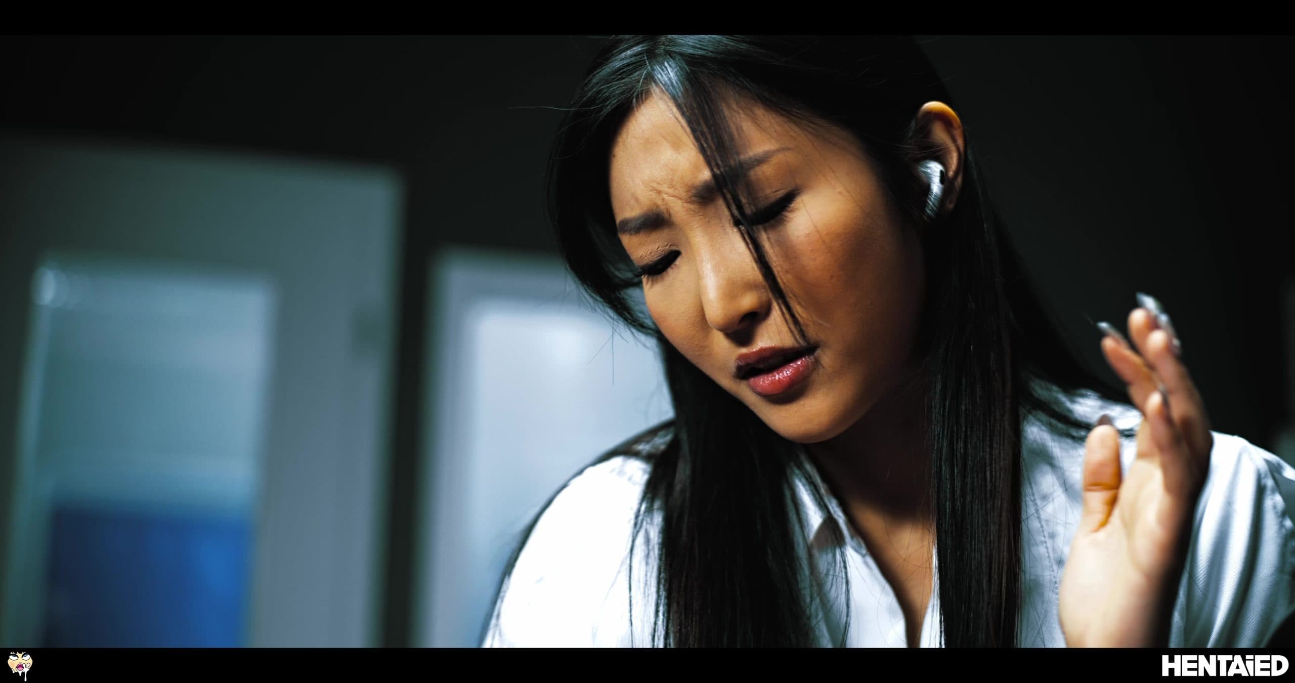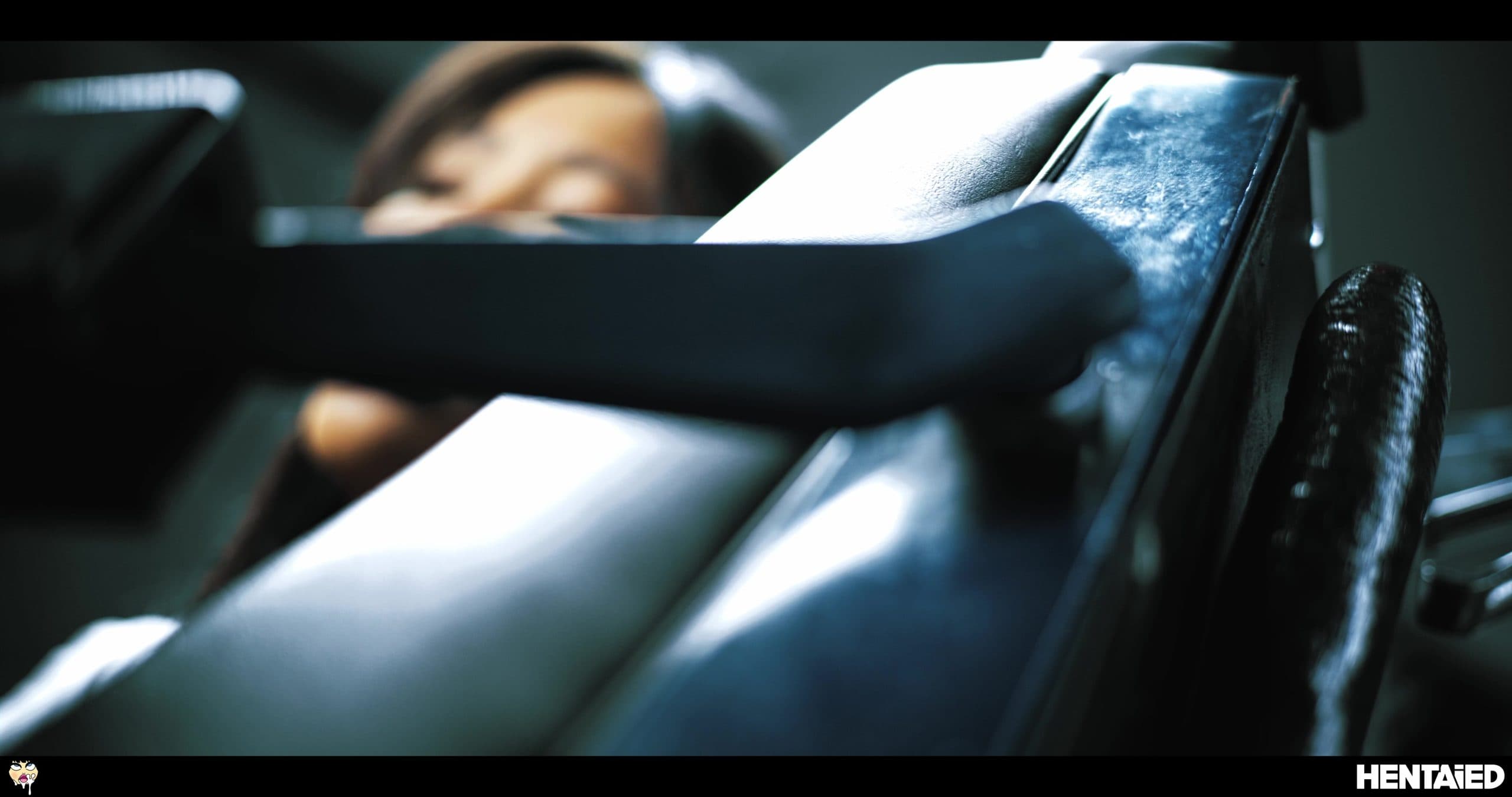 It’s disgusting but she keeps wiping even harder, fully focused on the problem at hand while a danger appears. All over the lab, a bunch of alien tentacles crawls over the floor, all around Emiri, approaching her for an ambush. She’s done with the cleaning, the seat is spotless, and just in time. Alien tentacles wrap around her ankles and neck, planting her on top of the same chair, and holding her still in place. Her white panties are peeking under the skirt as she’s fighting for breath.
