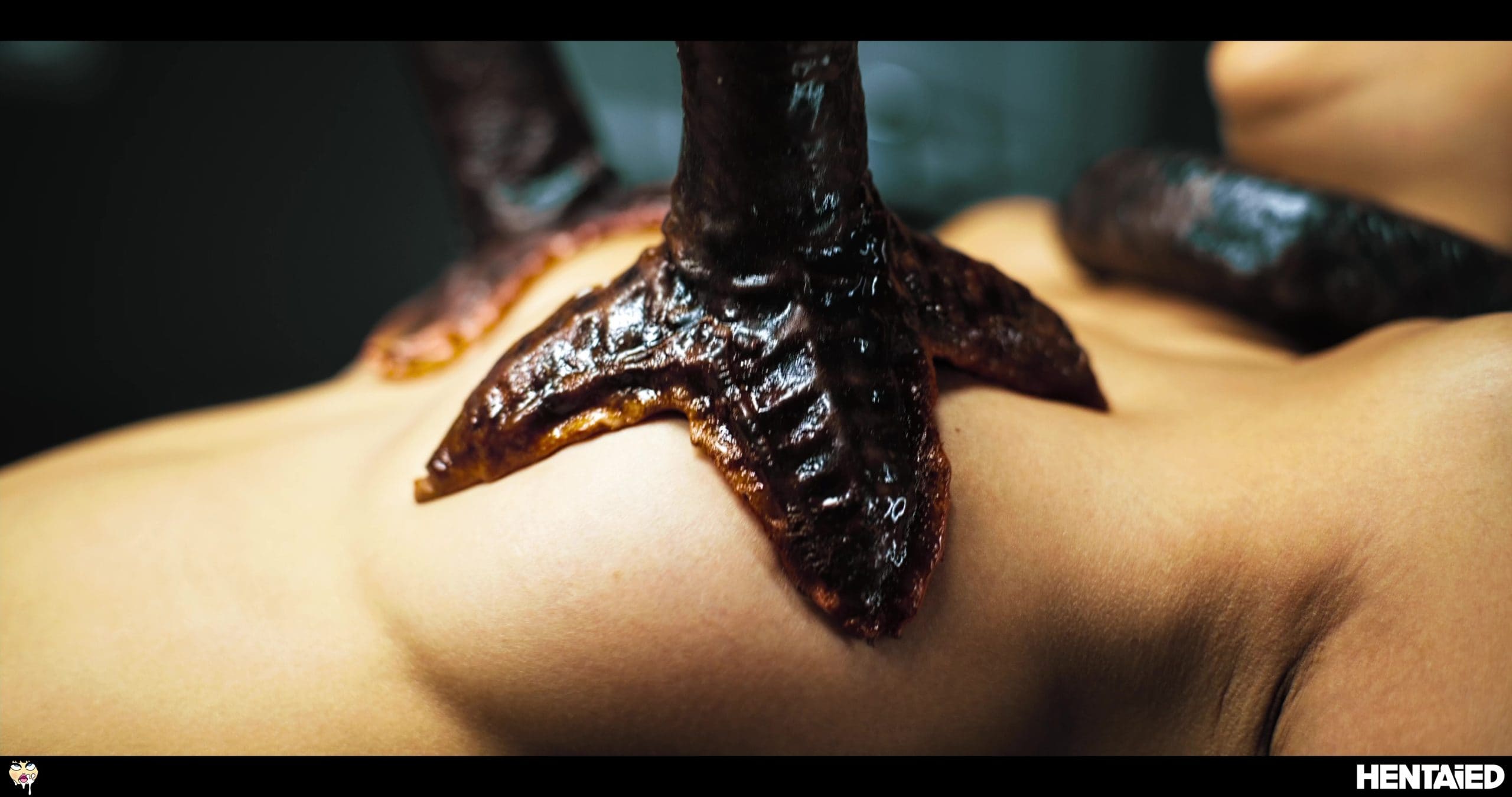 A couple of suckling tentacles appear. They latch onto her tits, right above the nipples, and start sucking them while Emiri wriggles in newfound pleasure. She’s moaning in her squeaky voice and whispering something in Japanese. Then in the midst of her pleasure, a tentacle cock sneaks up inside her pussy. Emiri gasps, surprised by the thickness of the tentacle cock inside her, and her eyes start rolling back into her head. The surprises never come to an end with these horny aliens.