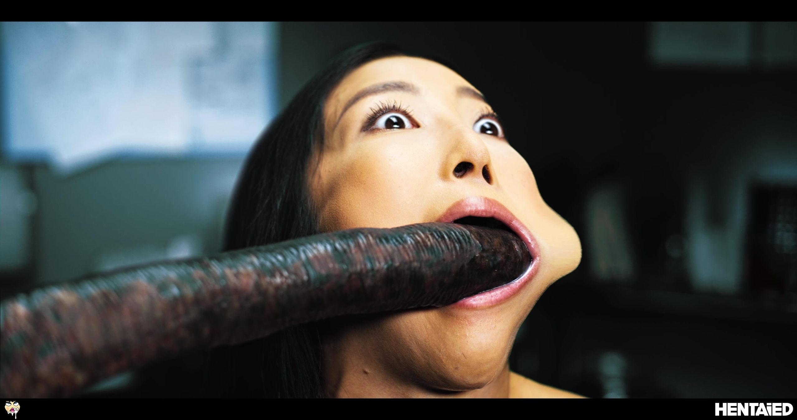 As she’s gasping from the pleasure, a tentacle rushes inside her mouth. She gets up in a sitting position, only to get a rimjob by a tentacle cock that violates her mouth hard. Before it leaves, the tentacle busts a load inside Emiri’s mouth. Not only does she spit it out, but it bursts out of her mouth as if it was a waterfall. All the leftover alien jizz slides down her lips as Emiri falls back to the chair, exhausted and used like a fuckdoll with alien cum all over her body.