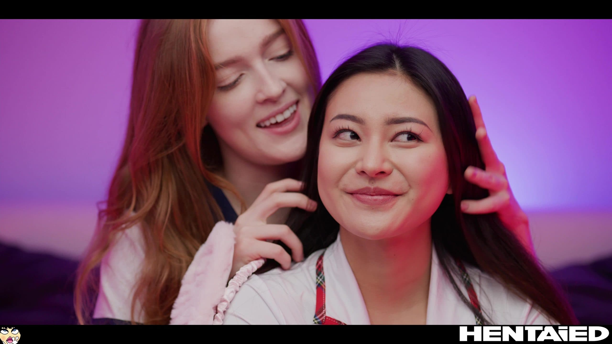 Both of them are nude, wearing only panties, and chit-chatting about their upcoming show. Once Jia lays the plan to Rae, they dress up in skimpy, slutty outfits, and start rolling. They will play a mobile video game for the prize.