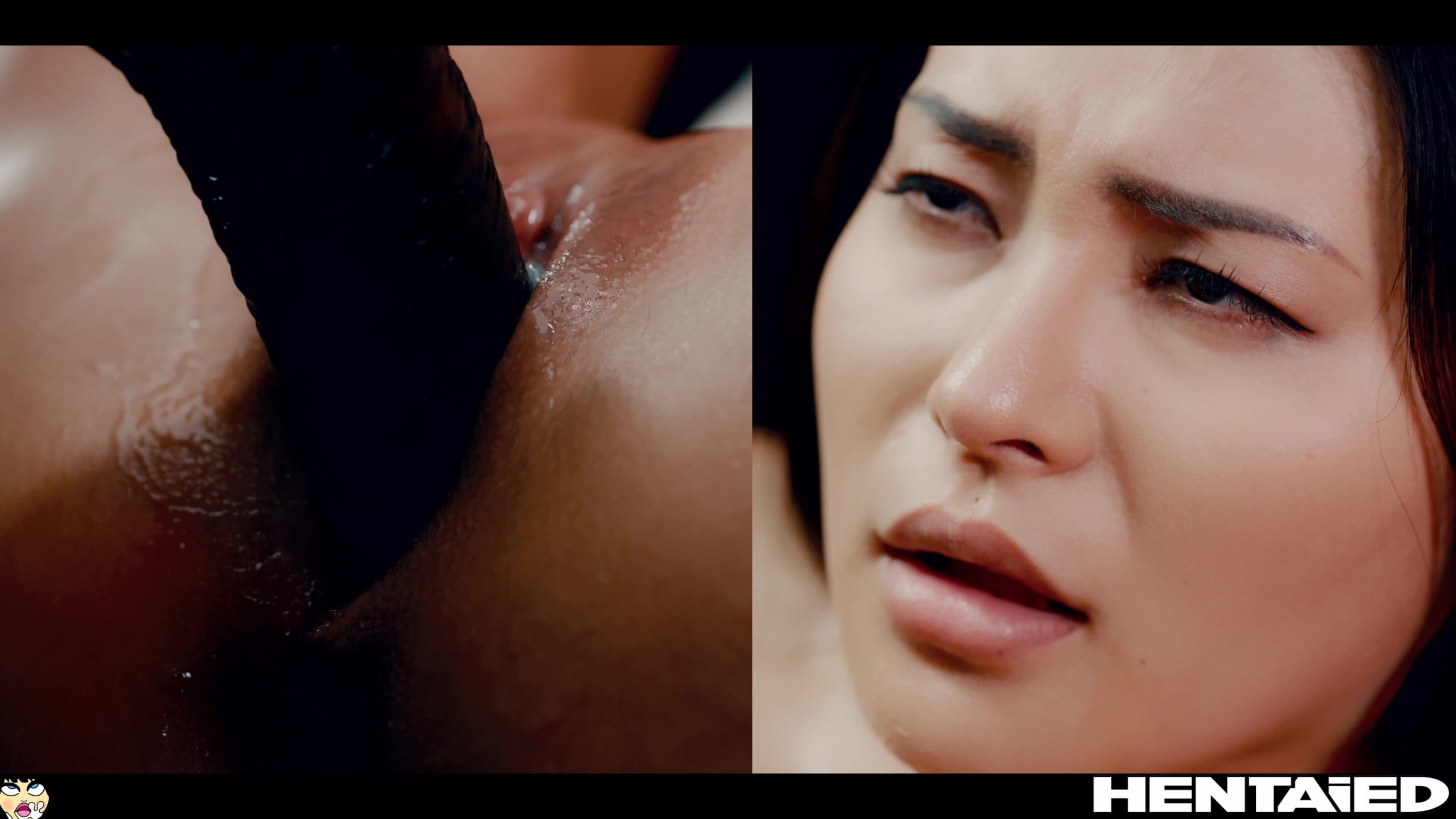 Even though she’s covered in it, Rae feels as if there’s more that could be done. Two tentacle cocks at once will do the trick. She needs that double pussy penetration to feel excited even more. Followed by an upside-down position and a blowjob to seal the game.