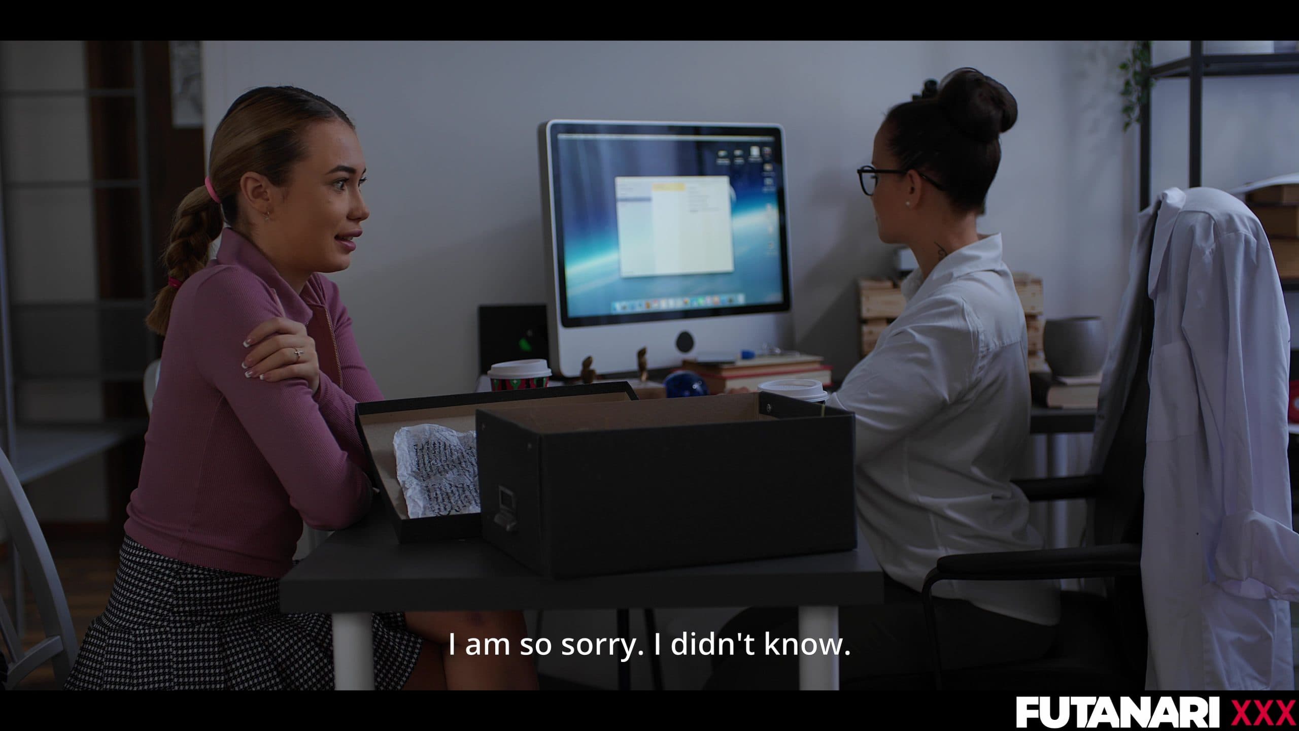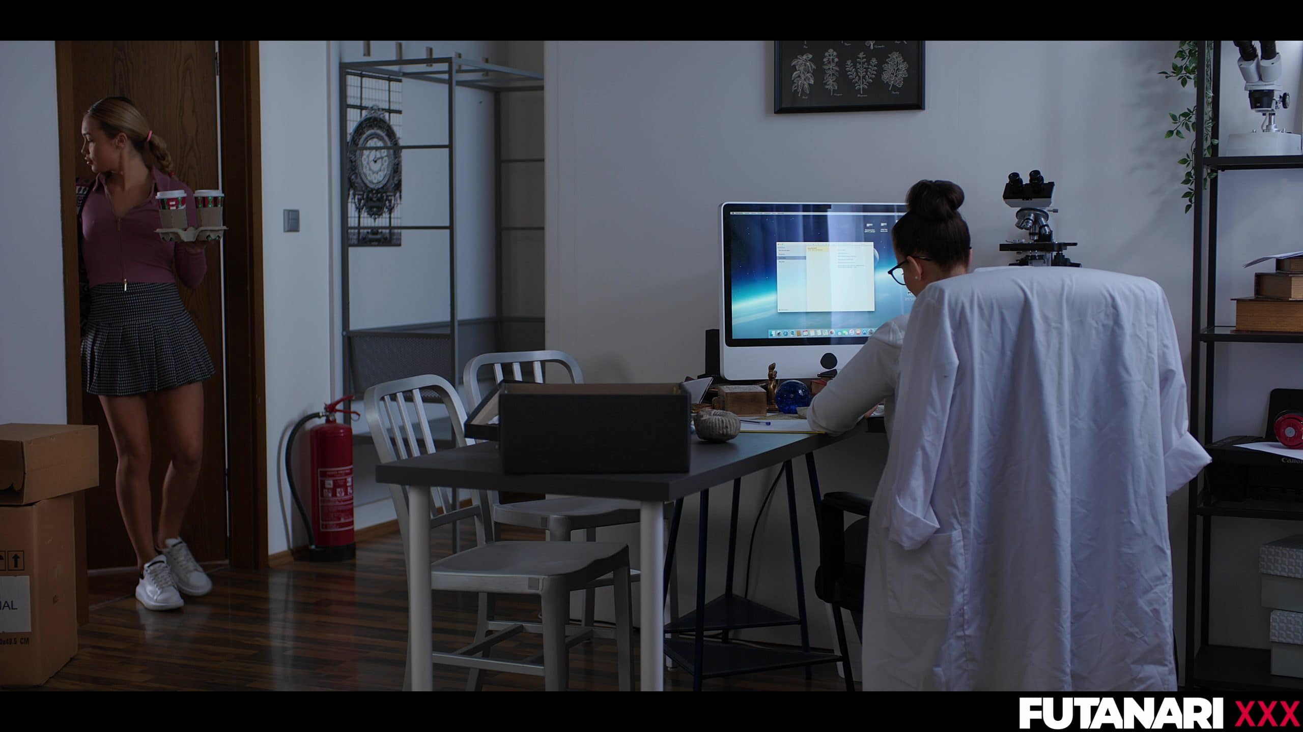 The tip is all she needs to suck in order to relieve herself and reach an orgasm. Her own cum ends up in her mouth, and she couldn’t be happier, it’s like a dream come true. Jennifer goes to clean up, and in the meantime, her student comes over to hand in the paper. There’s no one in the room but Rika, until she hears a loud thump of the door behind her, with her professor Jennifer standing there, tits out, smirking at Rika. Rika is seduced instantly, Jennifer’s lust is seeping from every pore of her body, and it’s irresistible. She commands Rika to kneel and suck her cock, reassuring her that it’s nothing to be afraid of, this dick is a gift from god.