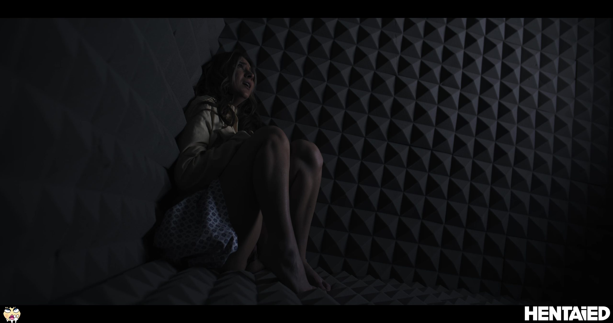Suddenly her mind starts playing tricks on her. She’s fully nude sitting in the corner. Soon enough she’s sitting with her back against the padded walls, facing something crawling over to her.