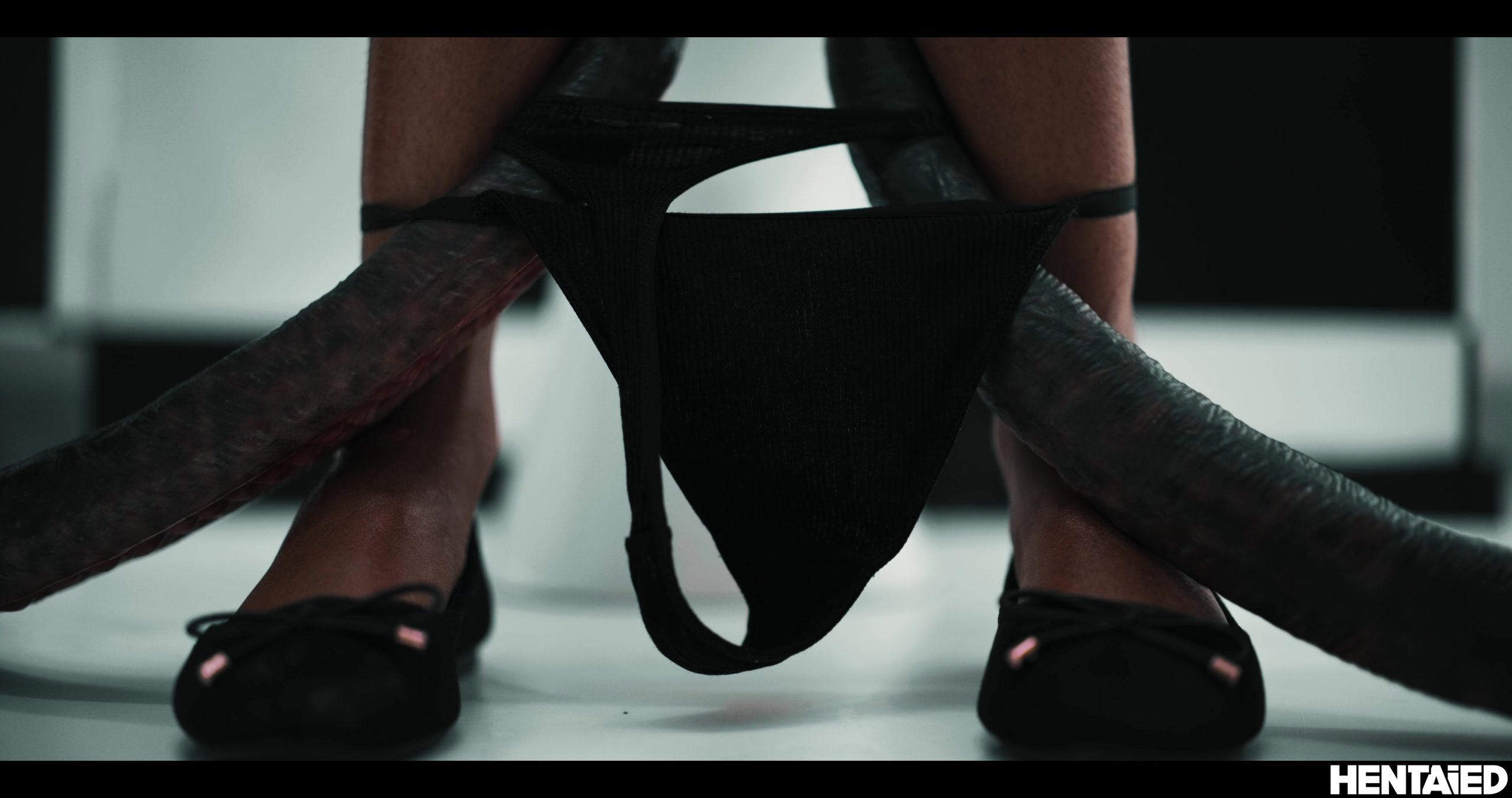 They crawl back as Mia lies half unconscious, approaching with big black alien dicks from all sides. They wrap around her body and legs, holding her still in that perfect position so they can do some more work on Mia’s delicious pussy. Now they’re taking their time, one of the tentacles approaches her wet slit, slowly entering inside it while Mia moans from the pleasure of the thick alien rod inside her. Even her beautiful soles are getting used for a footjob as one of the tentacles grinds between her pair of feet.